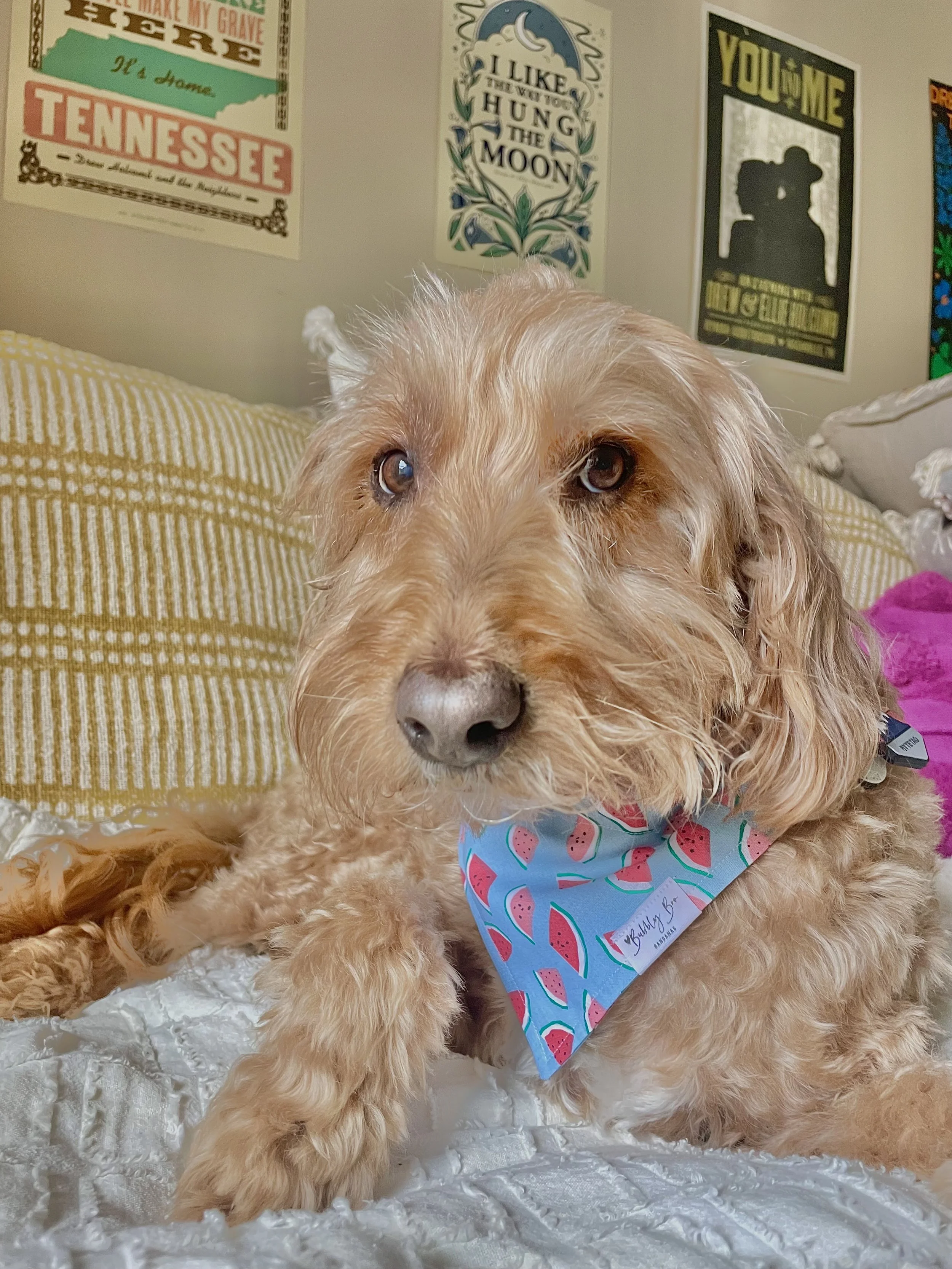 Hi! Our names are Parker & Lauren, and we are the founders of Bubbly Boo Bandanas. We are best friends, turned roommates, to now business owners! We are based out of Knoxville, TN, and all of our bandanas are handmade with love! We started Bubbly Boo Bandanas because we couldn't find bandanas that we absolutely loved to buy for our pups. We each have a golden doodle and their names are Murphy & Tex. They are our absolute world! They love to model for us, so you will definitely see them on our page. We cannot wait for Bubbly Boo to grow and to share it with people all over the world!